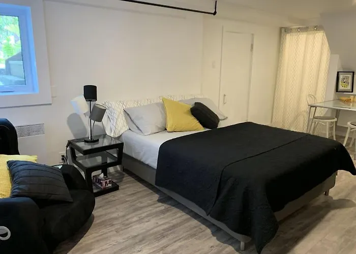 The 1-room Studio Ananas Quebec City is located 4.8 km from the Fairmont Le Chateau Frontenac|Fairmont Le Chateau Frontenac and merely 8 minutes' walk from College Stanislas. Bicycle rentals are provided for guests to explore the surroundings.